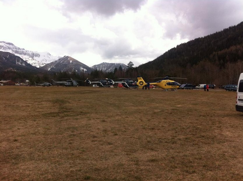 French prime minister Manuel Valls said a helicopter had managed to land near the crash site and had found no survivors.
