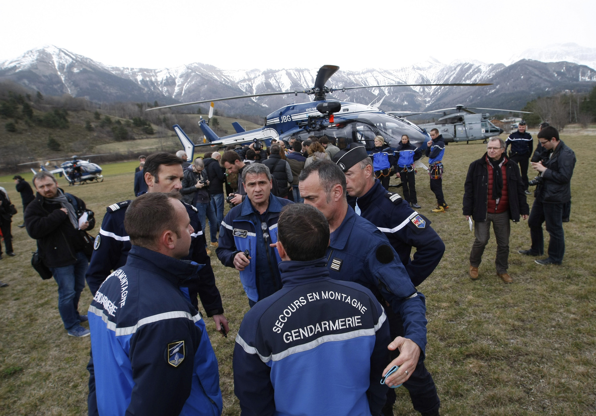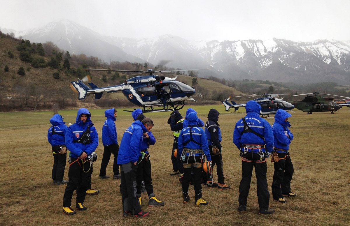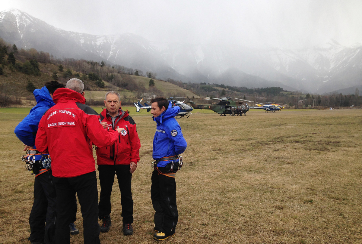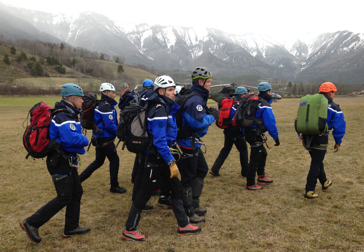 LA SEYNE LES ALPES, FRANCE- MARCH 24: Gendarmerie and French mountain rescue teams arrive near the site of the Germanwings plane crash near the French Alps on March 24, 2015 in La Seyne les Alpes, France. A Germanwings Airbus A320 airliner with 148 people on board has crashed in the French Alps. (Photo by Patrick Aventurier/Getty Images)